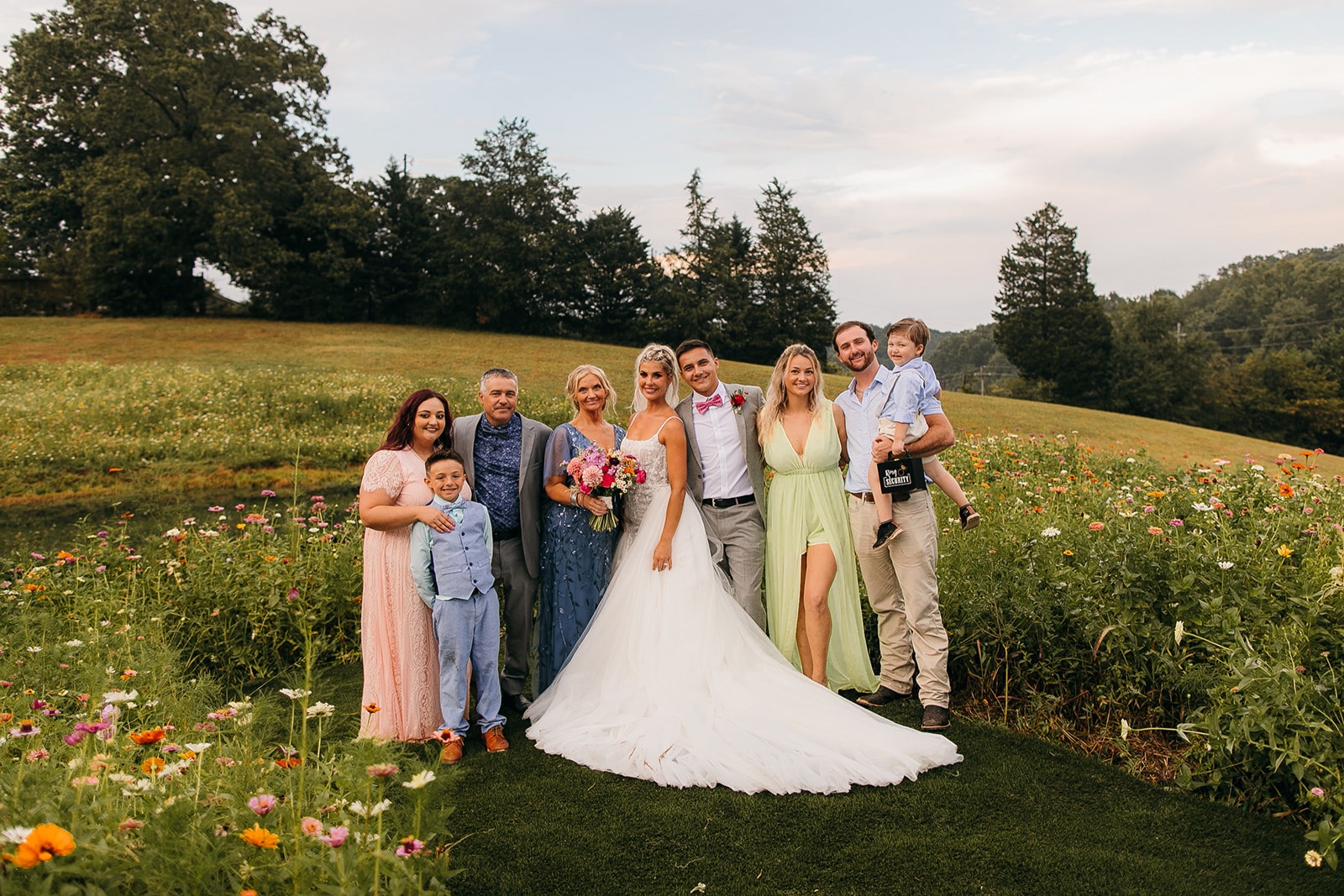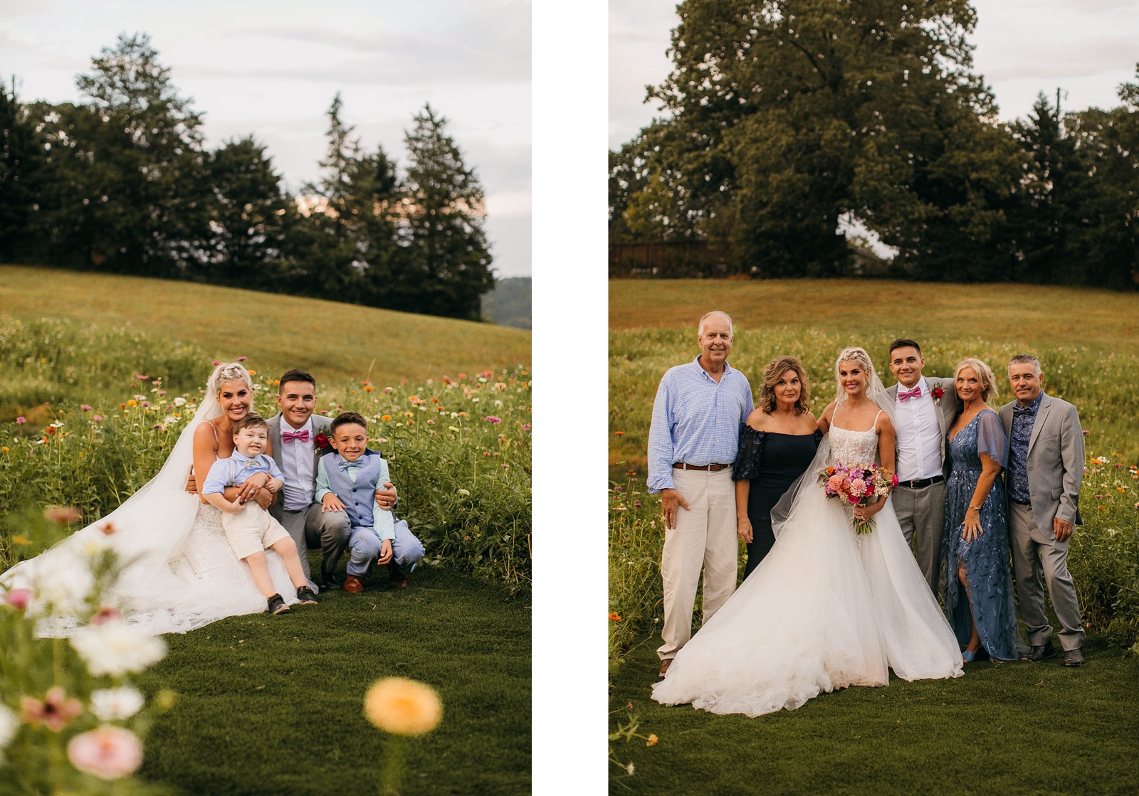 Family photos followed immediately after, with everyone posing naturally among the wildflowers. No stiff portraits—just candid moments and a lot of barefoot kids in the background.