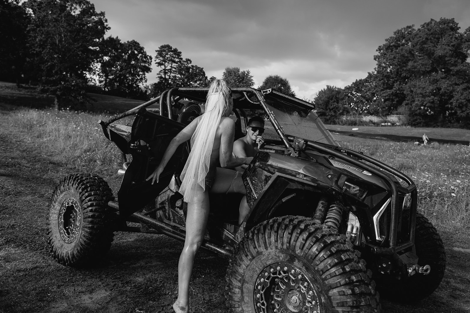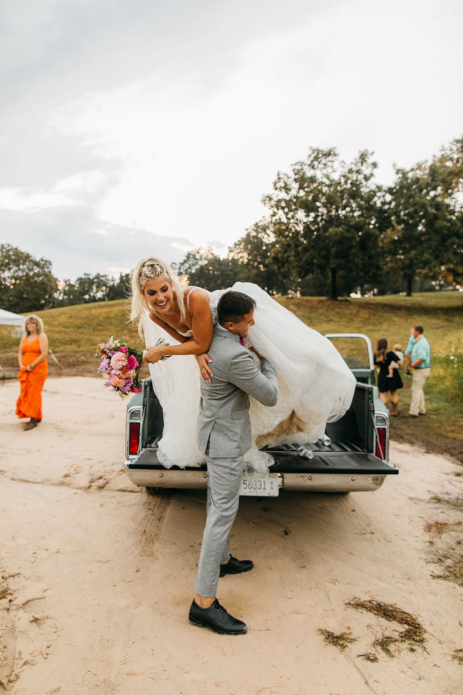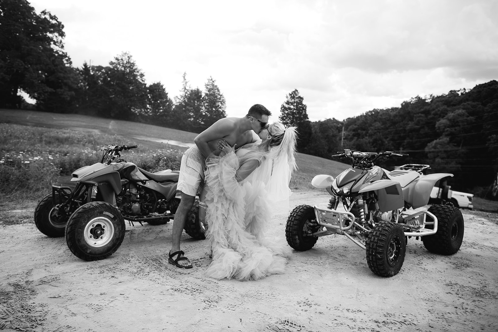 The bride and groom, now in casual clothes and boots, took guests for rides around the property on their 4-wheelers. Laughter echoed through the fields as guests bounced down trails, some holding on for dear life, others raising hands in celebration.