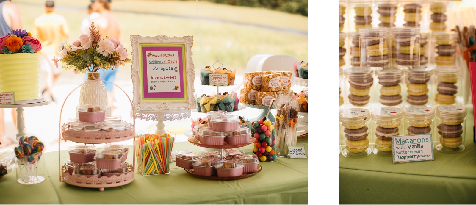 A large tent had been set up in the yard with bean bags, picnic tables, and lots of shaded space to relax. At the center of it all was a massive dessert and candy table. Think oversized glass jars, handmade signage, and a DIY donut wall. It became the gathering spot throughout the morning and early afternoon.
