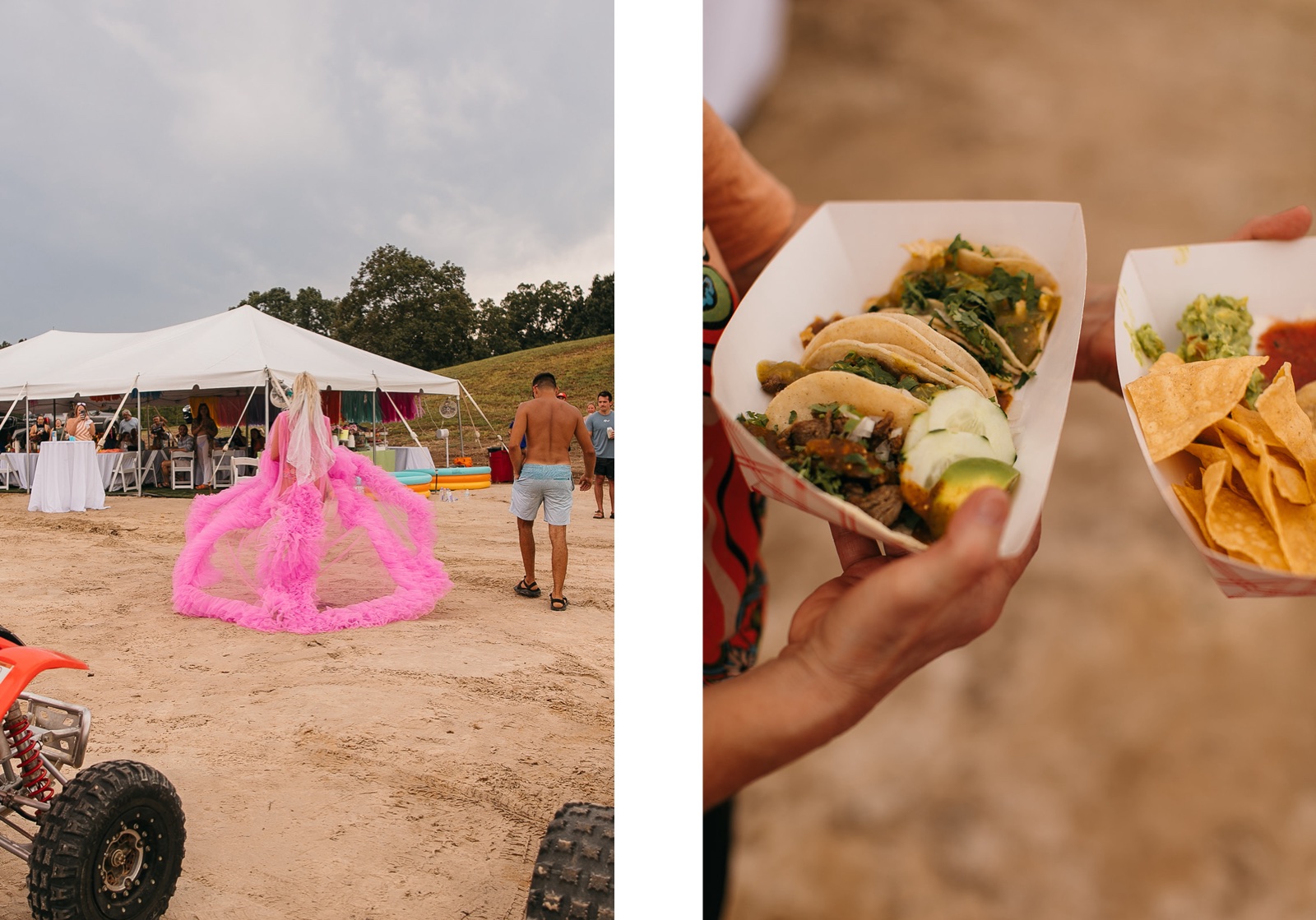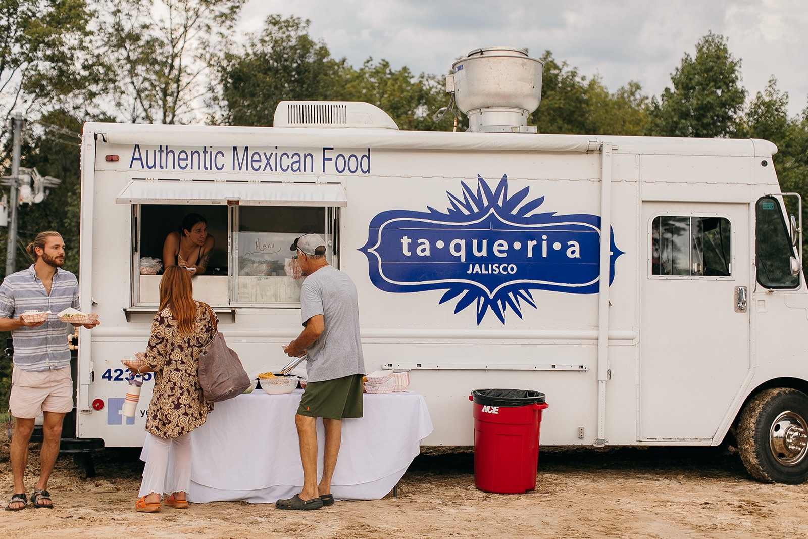 Instead of wrapping things up after one night, the couple planned a second day of celebration. Guests who camped on the property woke up to fresh coffee and breakfast tacos served again by Taqueria Jalisco—who returned for round two, this time with a morning menu.