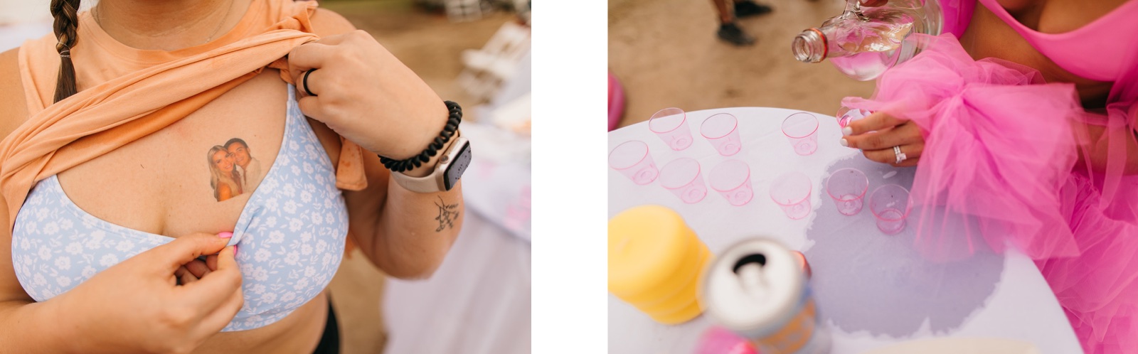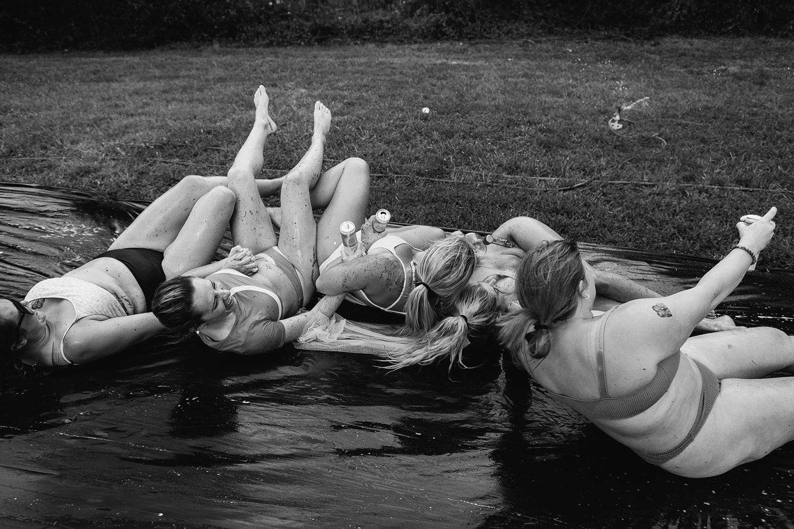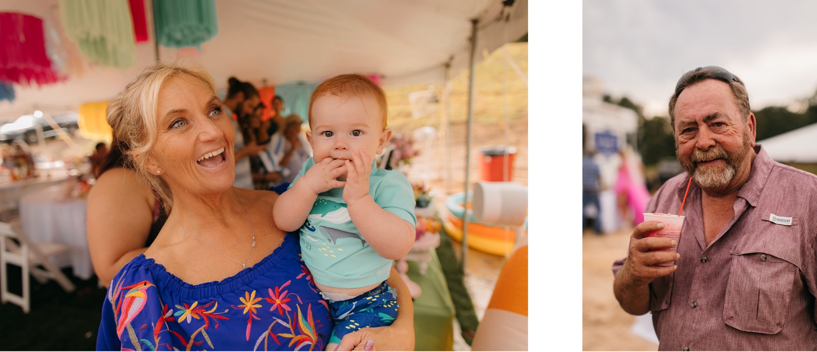 Guests took turns sliding down—some in swimsuits, others still in wedding weekend attire. There were water balloons flying, lawn games going, and nonstop music playing from the same well-loved playlist that had powered the night before.